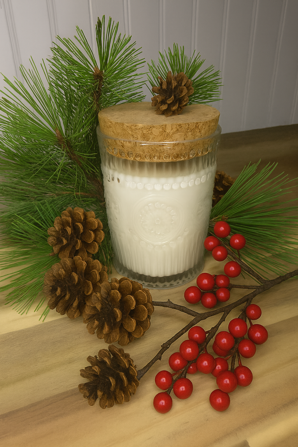 This festive and woody scent highlights crisp pine notes balanced by rich fir balsam, sweet berries, and patchouli. This holiday fragrance captures the feeling of taking a stroll through the woods.